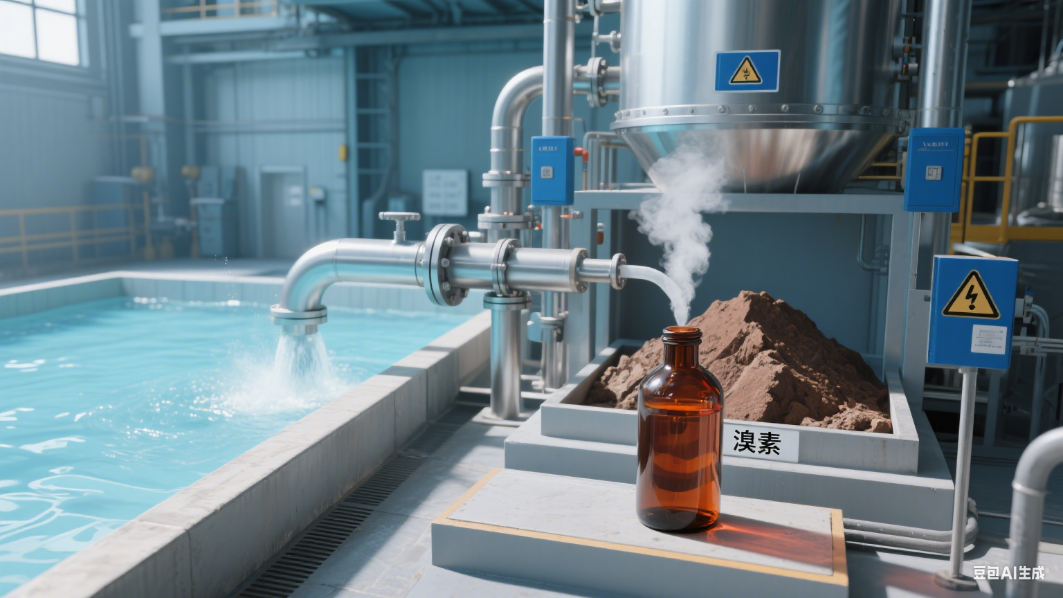 溴素的主要來源有兩種:海水和溴化物礦石。海水中含有較高濃度的溴化鈉和溴化鎂,因此通過蒸發海水可以獲得溴素。在礦物來源方面,溴化物礦石(如溴化鈉、溴化鉀等)也是重要的提取溴素的原料。通過化學方法,特別是氧化還原反應,可以將這些礦石中的溴化物轉化為溴素。